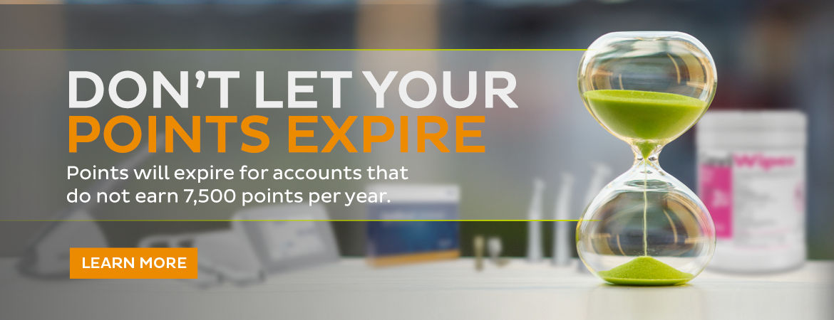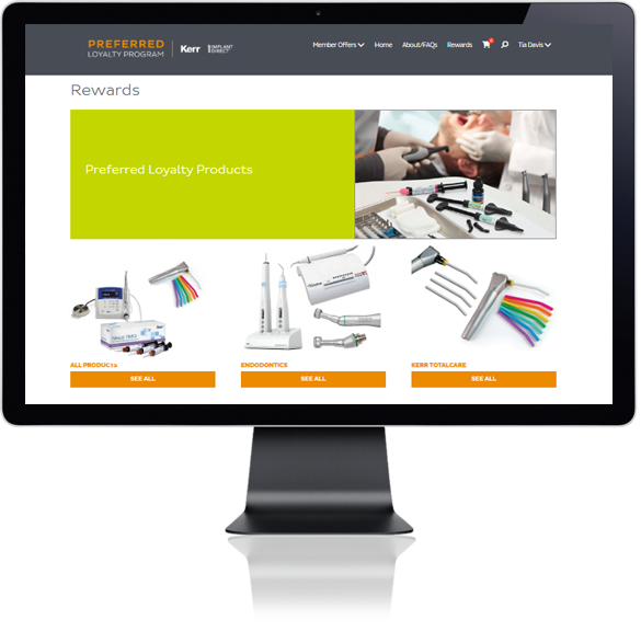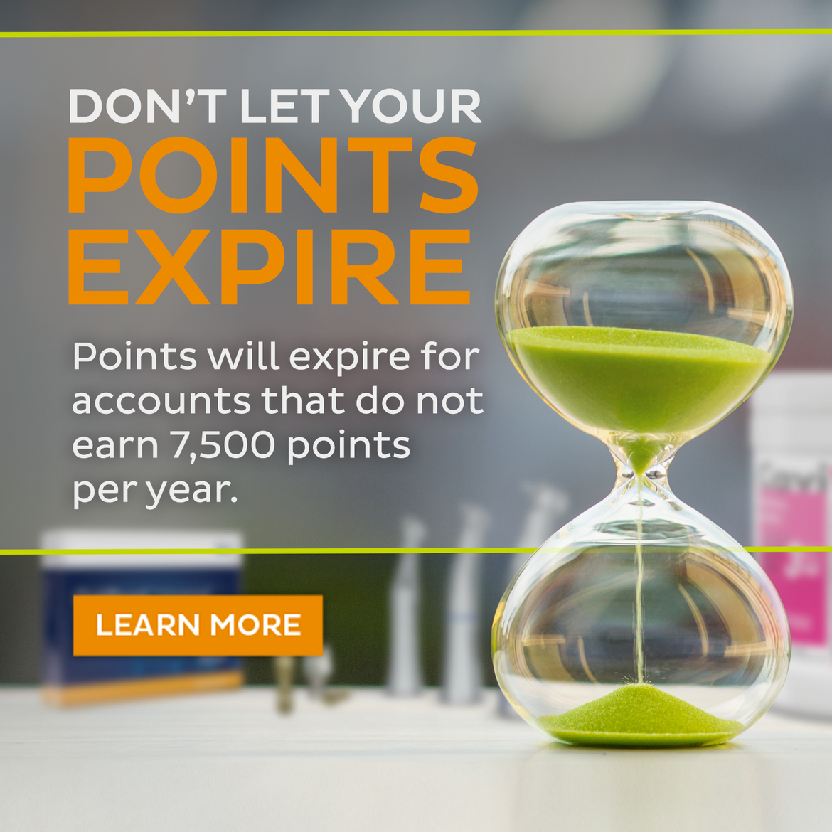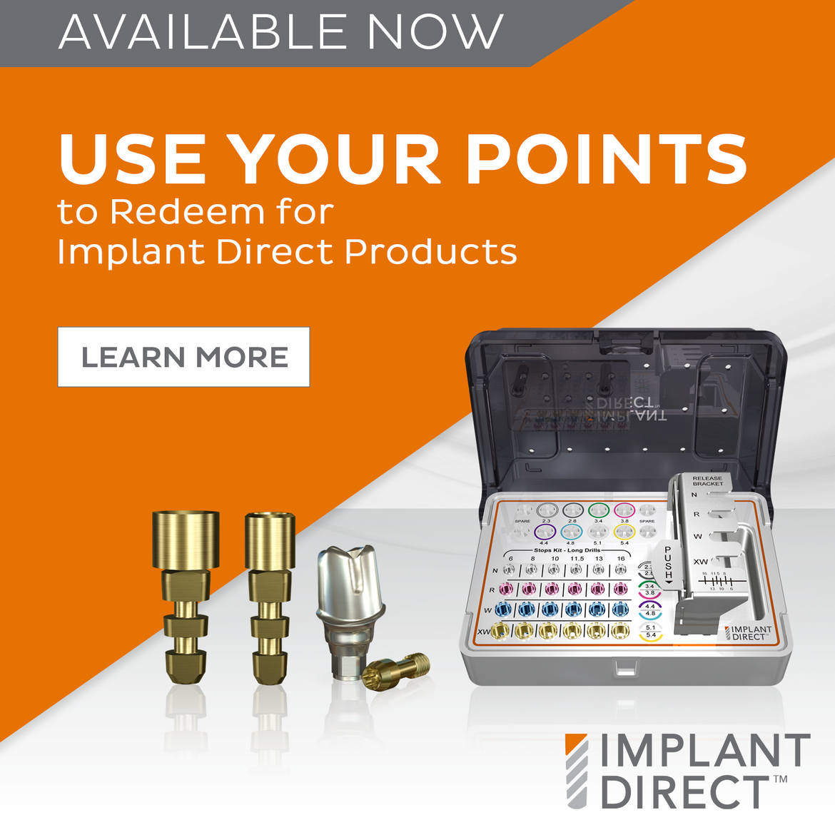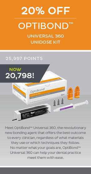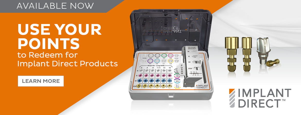 Loyalty program points can be redeemed at ANY TIME and can be used toward select Kerr and Implant Direct dental products, Kerr continuing education courses or a check payable to your practice.